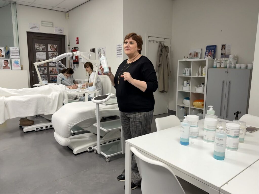 Tijdens deze sessie kregen de leerlingen niet alleen een duidelijke theoretische uitleg, maar ook heel wat praktische tips en tricks uit het werkveld. Daarna gingen ze zelf actief aan de slag met de Sensitive Beauty-lijn van Lisine, speciaal ontwikkeld voor de verzorging van de gevoelige huid.